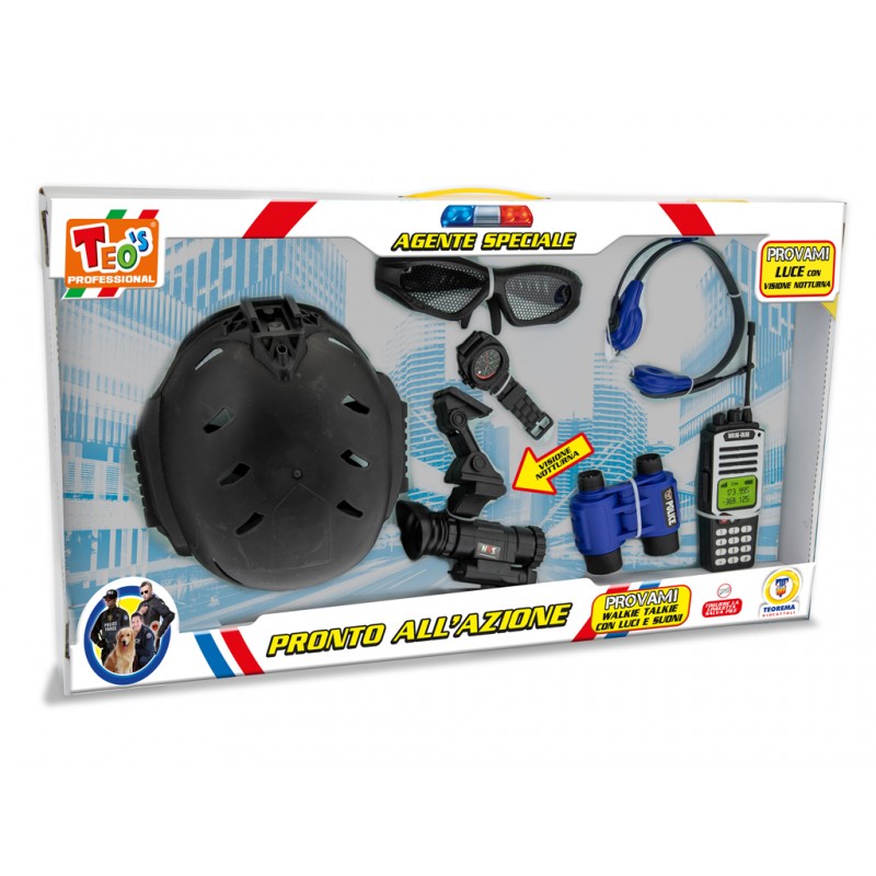 Contiene : occhiali con anche visione notturna, ricevitore, cuffie, orologio, canocchiali e caschetto.
