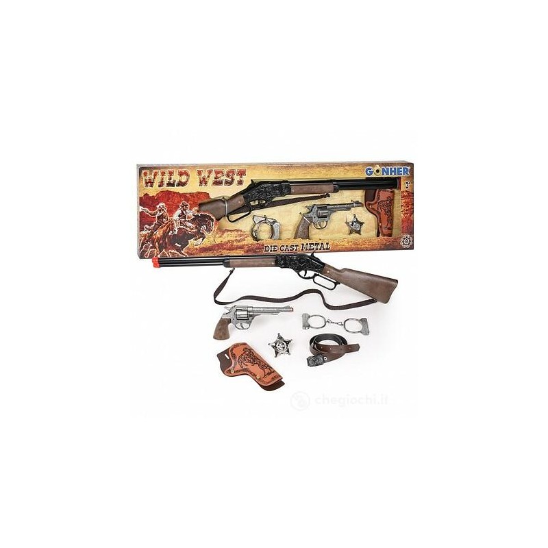 Fucile, Pistola 8 colpi (colpi non inclusi), manette, stella, fondina