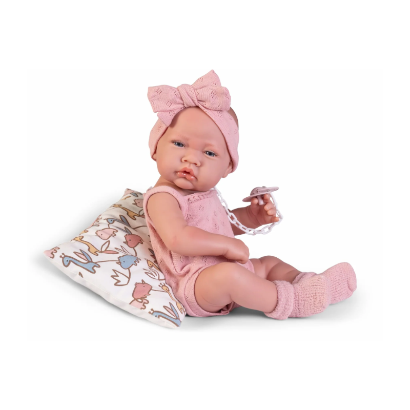 Ideale per stimolanti giochi di ruolo, il "Neonato in Pigiama" incoraggia i più piccoli a esplorare ed esprimere il proprio stile personale, offrendo la possibilità di scegliere tra vari outfit per vestirla giorno dopo giorno. Il set è completato da una fascia abbinata al pigiama, morbidi calzini per mantenerla comoda e calda e un cuscino per garantirle comfort durante i momenti di riposo. Inoltre, viene fornito con un ciuccio fissato con una catenella, che dona serenità e calma quando necessario.