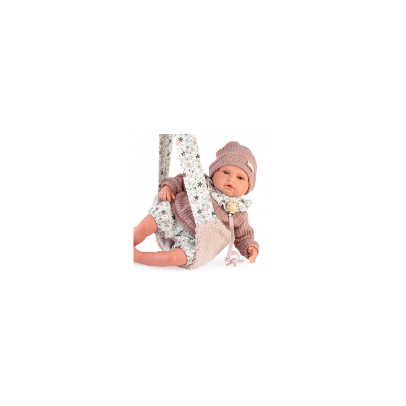 Corpo morbido e articolazioni in vinile con marsupio in morbido materiale.