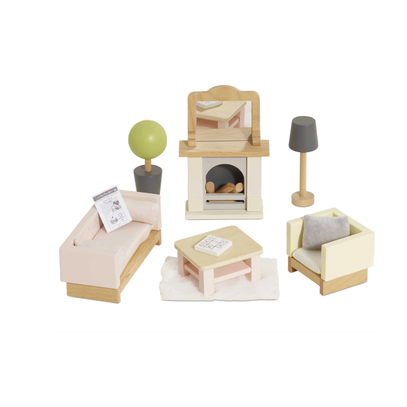 Rilassatevi in questo elegante salotto in miniatura, perfetto per dare il tocco wow alla casa delle bambole dei sogni di ogni bambina. Completo di 19 accessori individuali, ogni pezzo è solido, robusto e sostenibile, realizzato in legno certificato FSC™ e costruito per durare per generazioni.