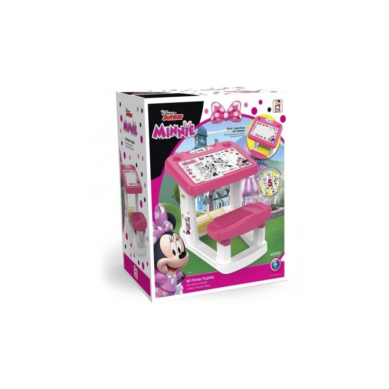 Questo divertente banco di Minnie è ottimale per i piccoli della casa per disegnare e dipingere Il banco ha una grande superficie di lavoro 45x27cm e una comoda panca che garantisce ore di divertimento immaginazione e intrattenimento Non perdere nulla grazie agli scomparti del banco il tuo bambino può avere tutte le sue cere e matite colorate ordinate Il banco include 5 divertenti stampe con illustrazioni di Minnie e dei suoi amici da colorare realizzato in plastica resistente e durevole I banchi sono ottimali nella prima infanzia disegnare dipingere e scrivere stimola la creatività concentrazione attenzione e capacità di espressione dei piccoli consigliato a partire da 24 mesi