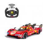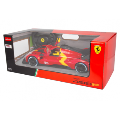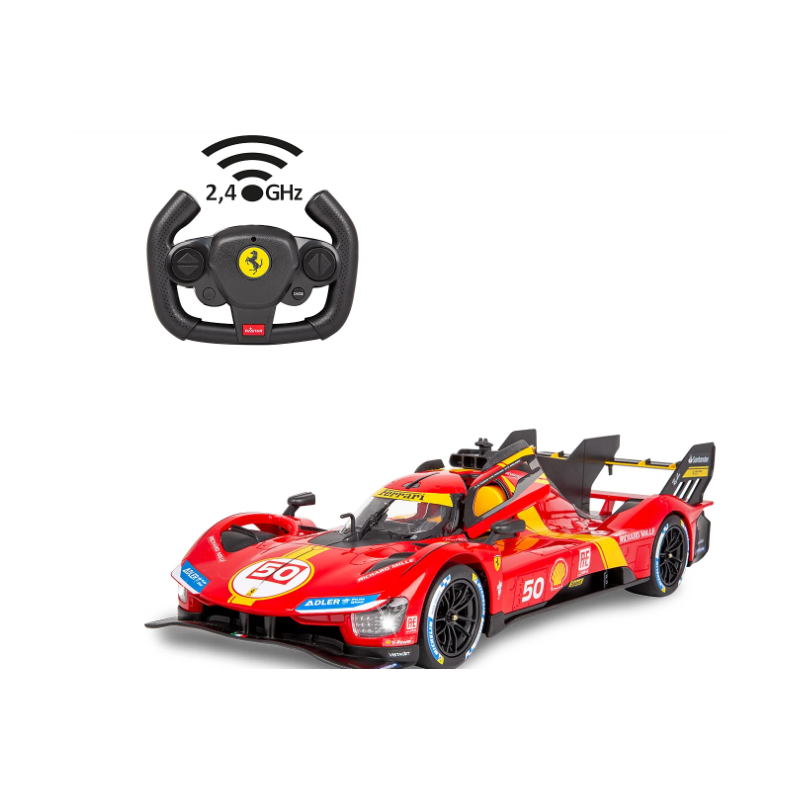 La Ferrari 499P originale è un prototipo sviluppato dalla Ferrari nel 2022 per la gara di auto sportive nella classe hypercar del FIA World Endurance Championship. Il nome del veicolo continua la lunga tradizione Ferrari di specificare la cilindrata per cilindro in centimetri cubici. I 499 centimetri cubici per cilindro si traducono in una cilindrata totale di 2994 centimetri cubici per il motore a sei cilindri a V. La P del nome sta per prototipo. Il sogno di guidare una di queste auto può ora diventare realtà. Con il modello di auto Deluxe in scala 1:14 con licenza ufficiale di JAMARA, potrete portare nel vostro salotto la sensazione di possedere un'auto sportiva come questa. Con luci a LED nella parte anteriore e posteriore e dettagli originali perfettamente riprodotti sul telaio e sulla carrozzeria, realizzati con cura, il veicolo convince anche per la sua lavorazione di alta qualità. Le porte possono essere aperte a mano e consentono di vedere l'interno dettagliato della Ferrari 499P. Con il radiocomando ergonomico da 2,4 GHz è possibile scegliere tra due livelli di velocità. Proprio come in una vera auto da corsa, si tiene in mano il centro di controllo e si raggiungono velocità fino a 11 km/h. I comandi, facili da apprendere, consentono al modello di fare esattamente ciò che si desidera. Quindi, via alle corse sul pavimento della stanza dei bambini e che il divertimento abbia inizio.